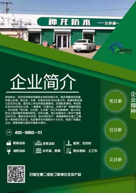 河間崢涂鴻泰防水材料有限公司主要生產(chǎn)丙綸布、滌綸布、瀝青膠泥等各種防水材料、產(chǎn)品質(zhì)量可靠、技術(shù)先進(jìn),專業(yè)貼心服務(wù),值得信賴。